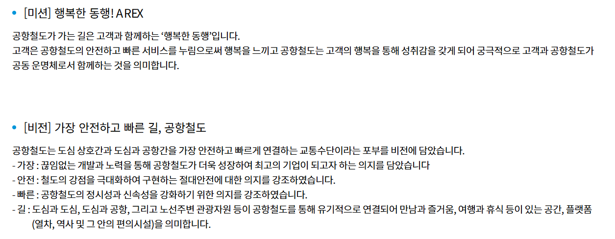 ◎ 비전, 미션 공항철도 홈페이지 참조