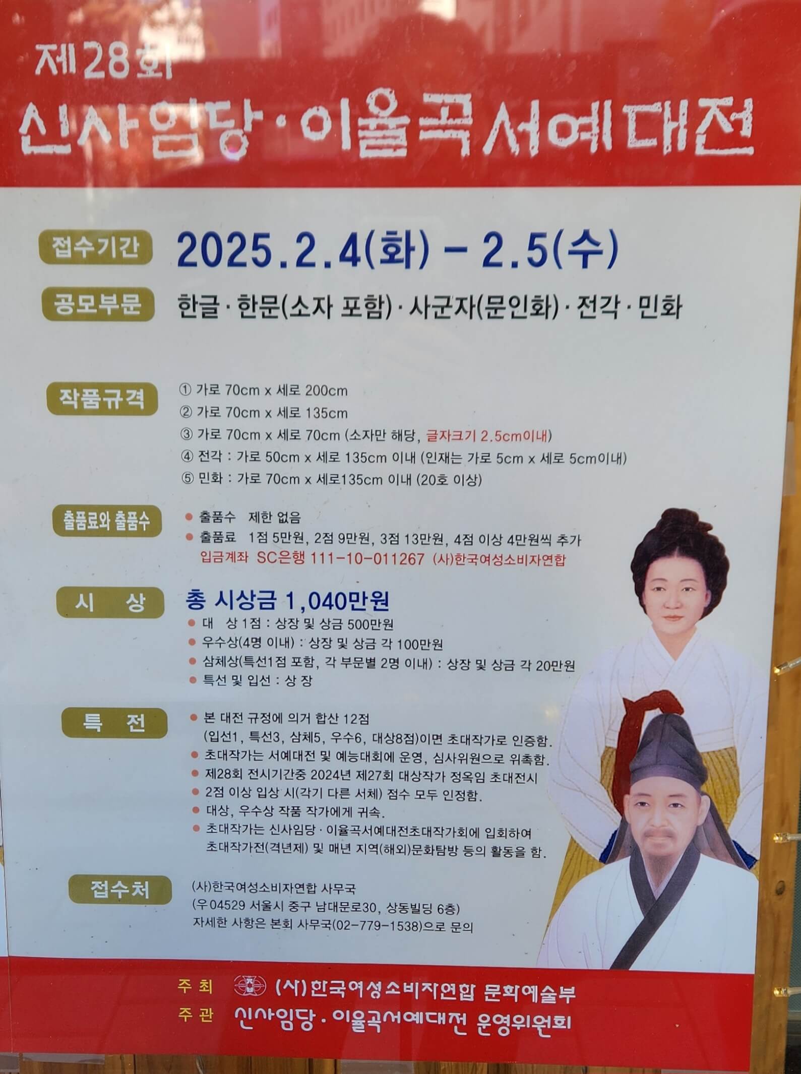 1. 2025년 제 28회 신사임당·이율곡서예대전